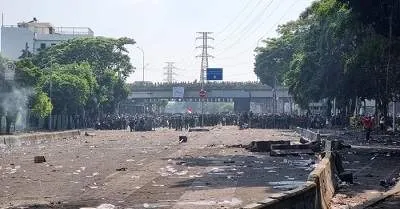 Massa lantas diarahkan ke arah Senen. Saat ini massa masih ada di atas dan bawah flyover Senen.