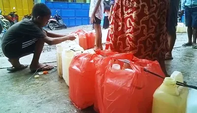 Pantauan di lokasi, sejumlah warga juga menyoal warga lain, yang datang dengan jirigen ukuran besar yang volumenya isinya diatas 20 liter, jauh lebih banyak dari jirigen ukuran 5 liter yang dibawah warga.