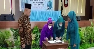 Berita Buru, Namlea – Serah terima Ketua Tim Penggerak (TP-PKK) Kabupaten Buru, dari Sukmawati Umasugi kepada Mega Azizah Salampessy, berlangsung di aula Kantor Bupati Buru Sabtu 04/06/22.