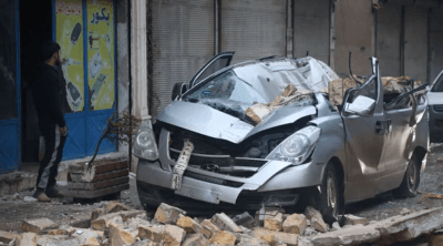 Banyak bangunan di daerah yang terkena dampak sudah mengalami kerusakan akibat pertempuran selama hampir 12 tahun perang saudara di Suriah.