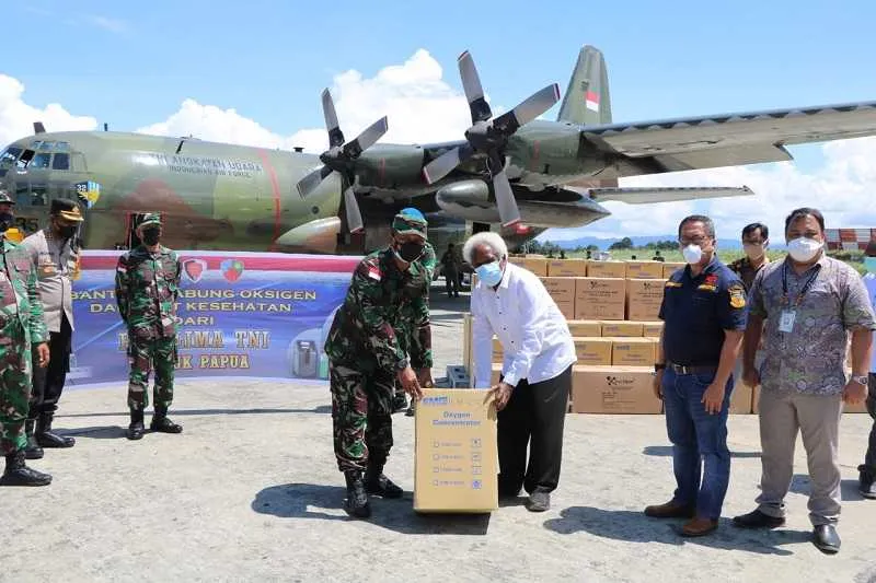 Ia menjelaskan bantuan yang diserahkan berupa 50 tabung berisi oksigen, 50 konsentrator, 1.000 APD dan 120.000 masker yang diangkut dengan menggunakan pesawat hercules TNI-AU.