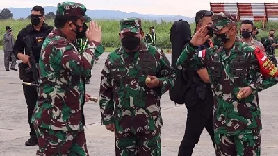 Berita Papua, Jayapura – Panglima Kodam XVII/Cenderawasih Mayjen TNI Ignatius Yogo Triyono dan Kapolda Papua Irjen Pol Mathius D. Fakhiri menyambut kunjungan kerja Panglima TNI Marsekal TNI Hadi Tjahjanto bersama Kapolri Jenderal Pol Listyo Sigit Prabowo di Base Ops Lanud Silas Papare, Kabupaten Jayapura, Kamis.