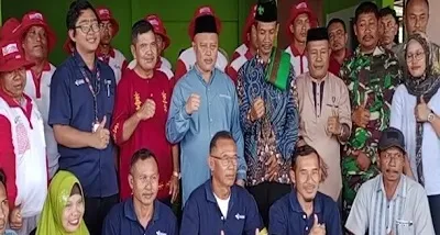 Dalam kesempatan tersebut Pj Bupati secara simbolis menyerahkan bantuan pupuk kepada enam petani petani. HJal yang sama juga dilakukan Kadis Pertanian Temok Karyadi, Kadis Disperindag Ifan Umasugi, serta Direktur CV Indosarana Abd Kadir Tan.DMS