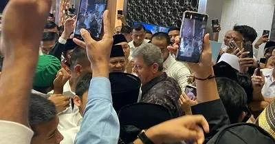 Usai melaksanakan salat, Presiden Prabowo dan Wapres Gibran menyempatkan diri untuk menyalami para jemaah yang hadir.