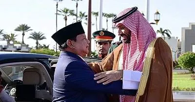 Kunjungan kenegaraan ini diawali dengan upacara penyambutan resmi. Setibanya di Istana, Presiden Prabowo disambut langsung oleh Pangeran MBS. Keduanya berjabat tangan dan berbincang ringan sebelum mengikuti upacara kenegaraan yang diiringi lagu kebangsaan kedua negara: Indonesia Raya dan Aash Al-Malik.