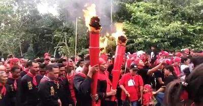 Obor tersebut dinyalakan oleh rombongan adat dari Negeri Tuhaha (Beinusa Amalatu), disaksikan langsung oleh Wakil Bupati Maluku Tengah, Mario Lawalata.
