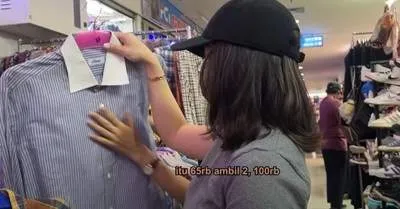 Nikita Willy mampir ke Pasar Senen dalam rangka thrifting (belanja barang bekas) untuk sebuah tantangan yang tayang di YouTube Nikita Willy Official.