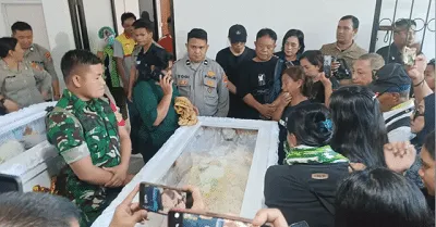 Manado (DMS) – Tiga jenazah korban kebakaran kapal KM Barcelona V di perairan Talise, Kabupaten Minahasa Utara, Minggu (20/7), resmi diserahkan kepada pihak keluarga oleh Rumah Sakit Bhayangkara Manado, Sulawesi Utara.