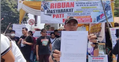 Pati (DMS) – Ribuan warga Kabupaten Pati, Jawa Tengah, kembali menggelar aksi di Alun-alun Pati pada Senin (25/8) dengan menggalang surat desakan kepada Komisi Pemberantasan Korupsi (KPK). Mereka meminta KPK segera menetapkan dan menahan Bupati Pati, Sudewo, sebagai tersangka dalam kasus dugaan korupsi proyek pembangunan jalur kereta api di Direktorat Jenderal Perkeretaapian (DJKA) Kementerian Perhubungan.