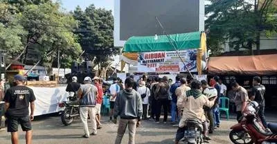 Terlihat juga ada armada truk yang terparkir di depan posko. Ada sejumlah spanduk yang bertuliskan agar KPK RI segera menangkap Bupati Pati, Sudewo karena diduga melakukan korupsi proyek jalur kereta api.