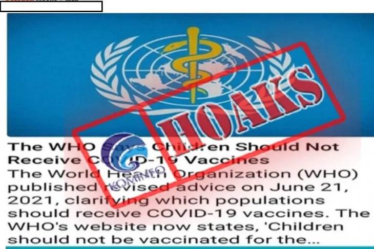 Berdasarkan penelusuran ANTARA, pesan yang mencatut WHO terkait vaksin COVID-19 untuk anak-anak itu adalah hoaks. ANTARA tidak menemukan pernyataan tersebut di situs WHO.